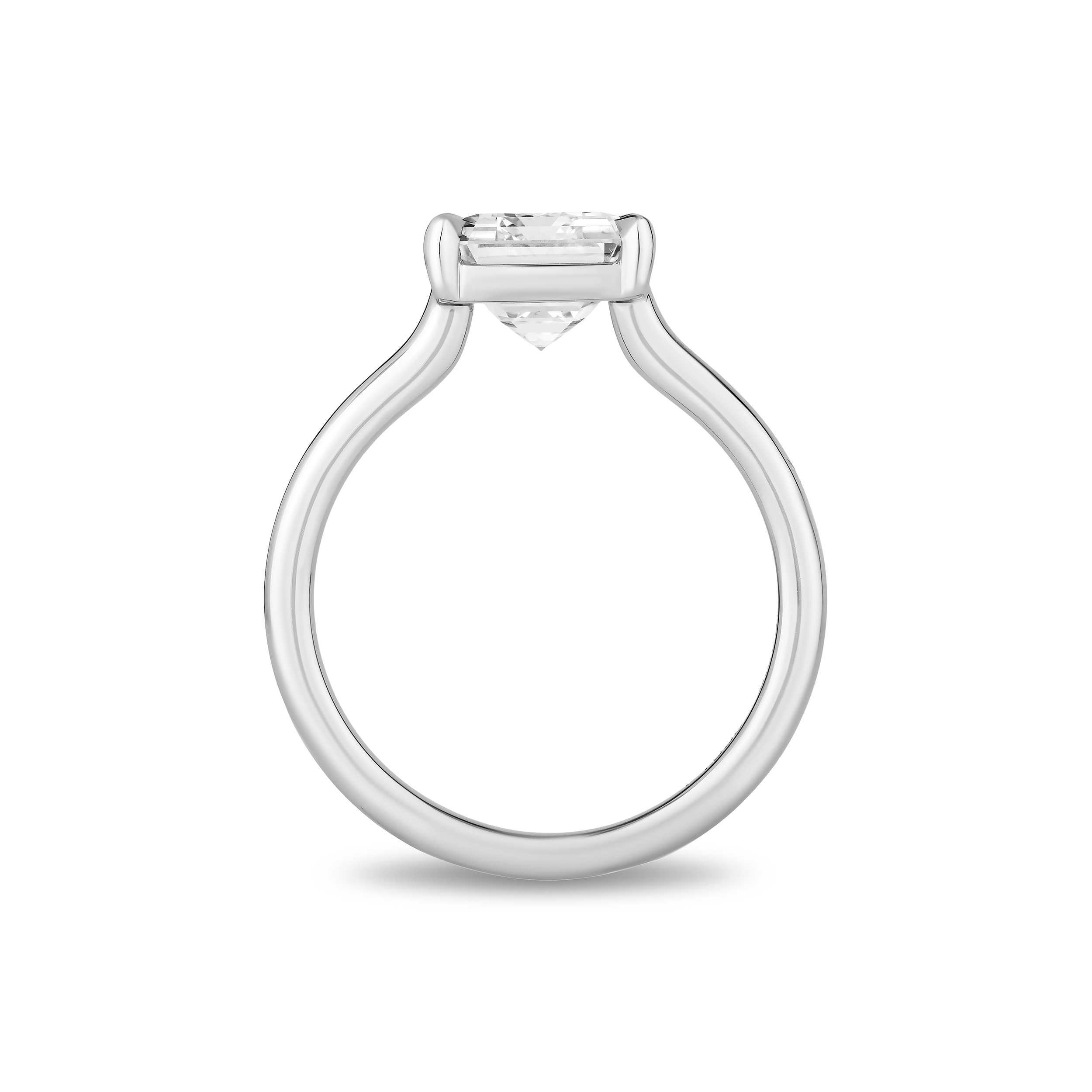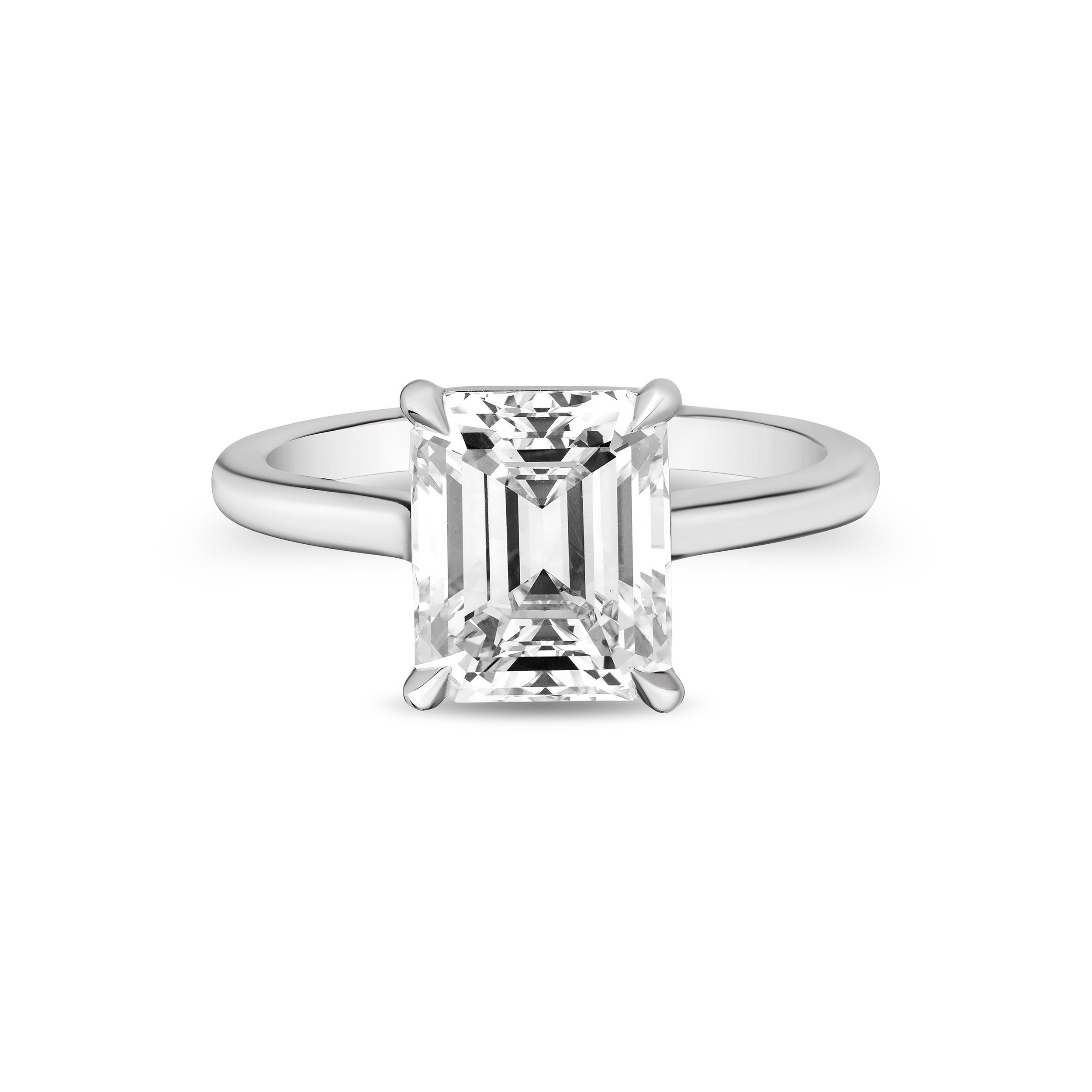 Introducing our emerald-cut diamond ring, featuring a gem-quality, GIA-certified emerald-cut diamond with F color and VVS1 clarity. Set in platinum with a sleek floating basket design, this ring weighs a total of 5.23 grams. This chic, modern design highlights the exceptional beauty of this natural diamond.
