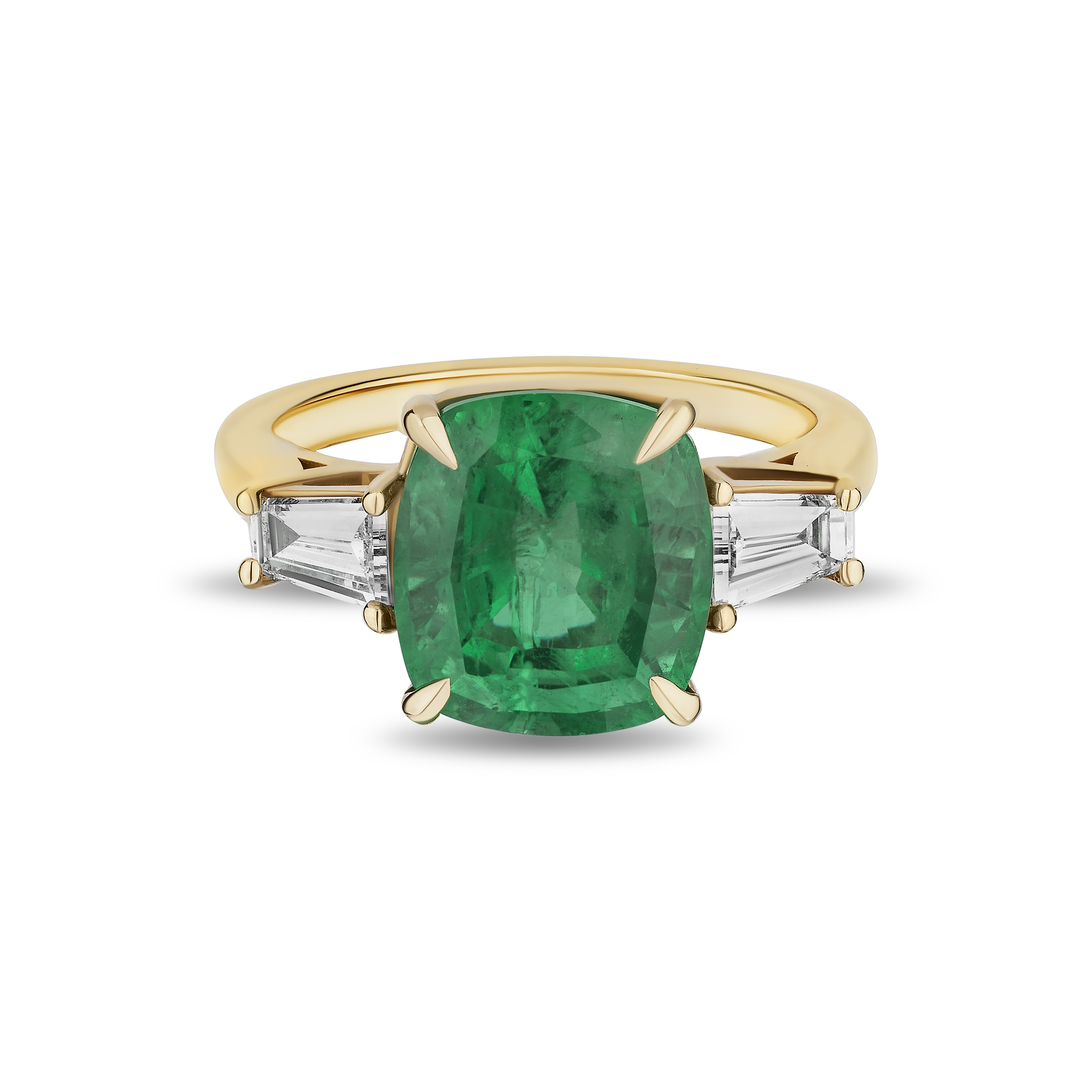 Cushion Emerald Ring with Tapers – 4.74ct TW