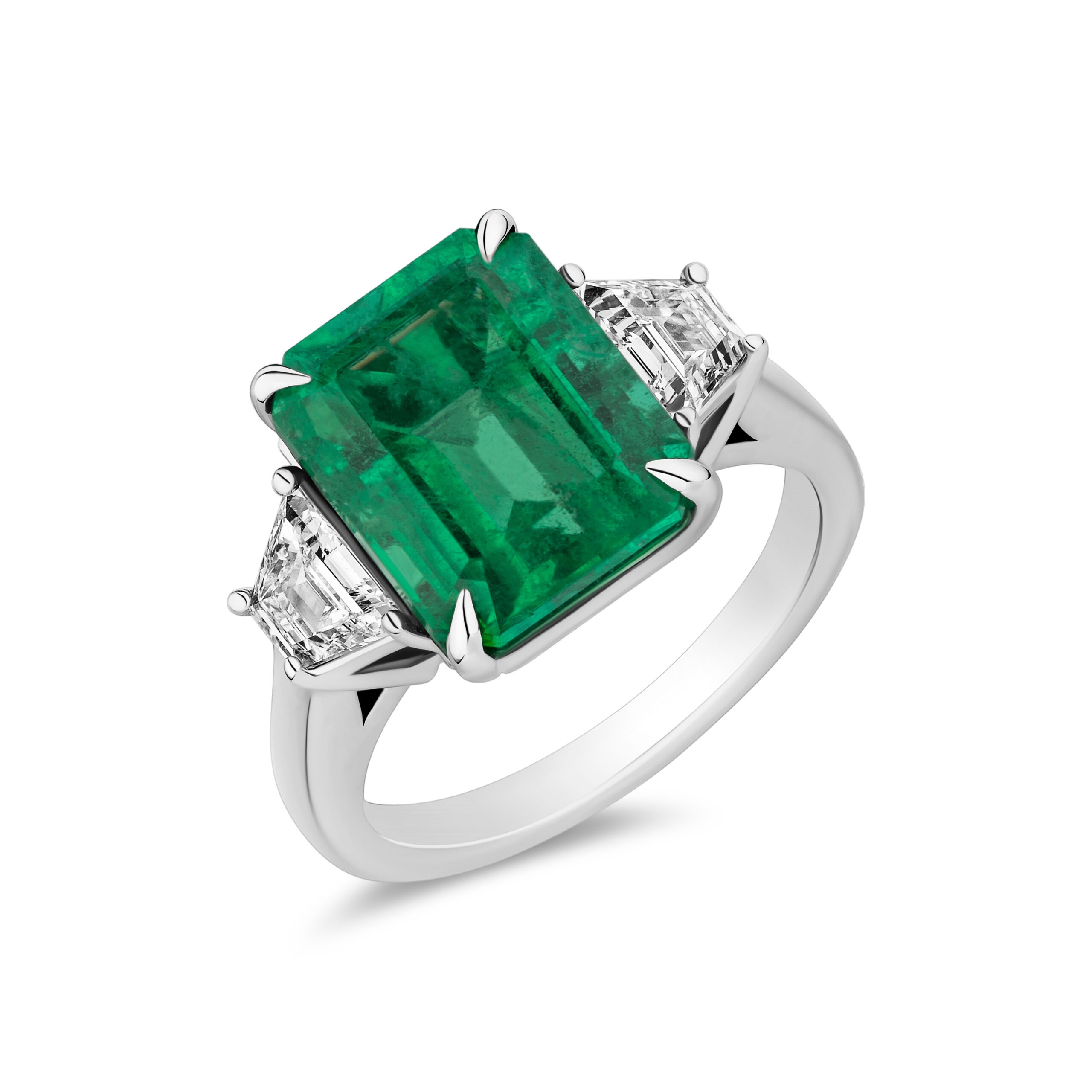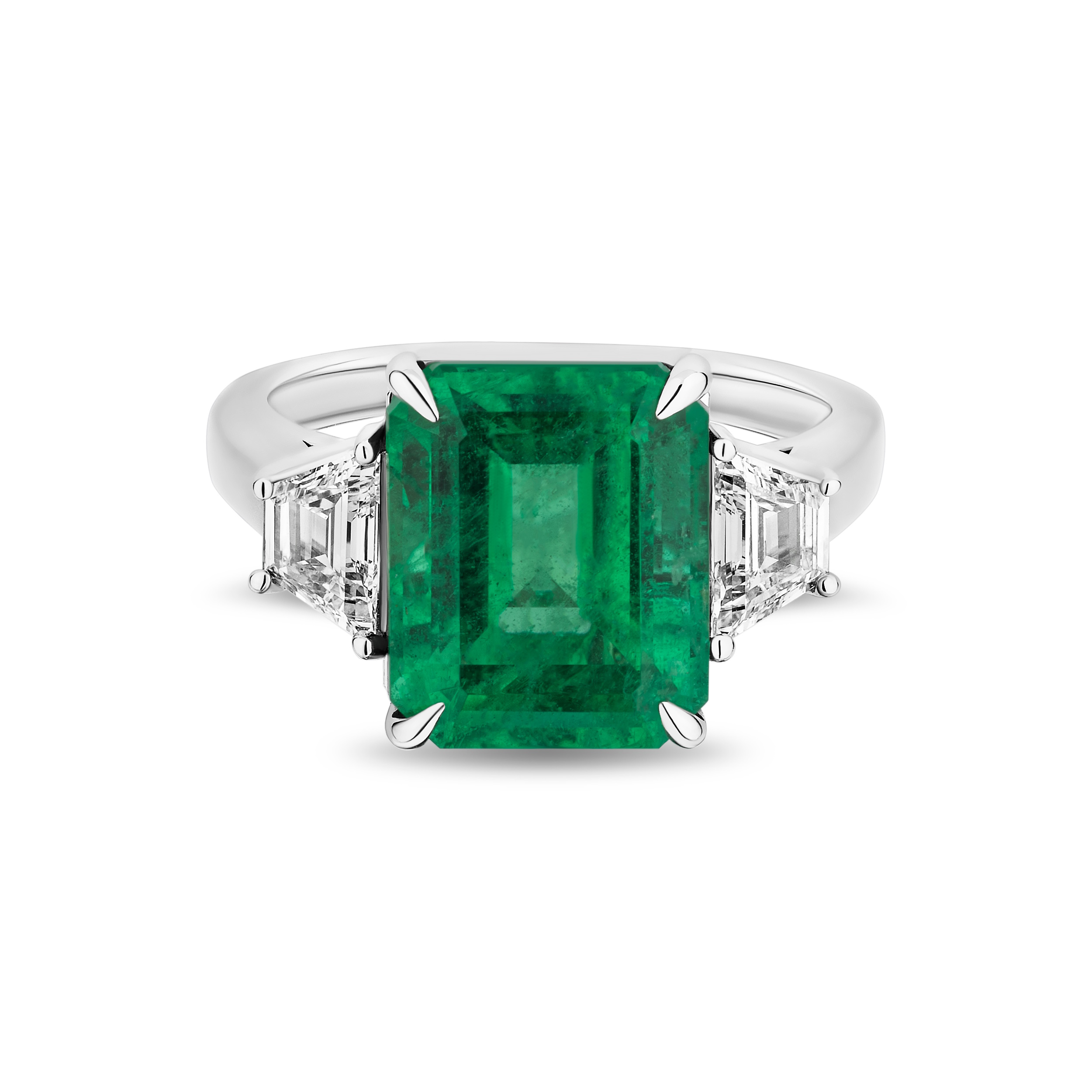 Emerald Ring with Trapezoid Diamonds – 5.73ct TW